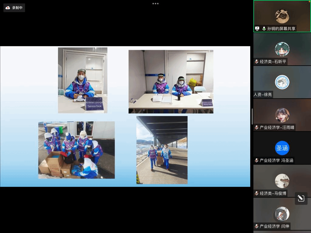 毕然老师结合其北京冬奥期间裁判员经历,从选拔培训、启程出发、奥运闭环管理和疫情防控、绿色奥运、节约奥运等方面进行了分享。在毕然老师的分享中,我们感受到了他作为一名冬奥人的荣幸与自豪,感受到了他作为一名高校体育教育工作者精诚奉献的精神。毕然老师鼓励同学们在学生时代要积极参与志愿服务,在帮助别人、服务社会的同时,收获经历、感受价值。
