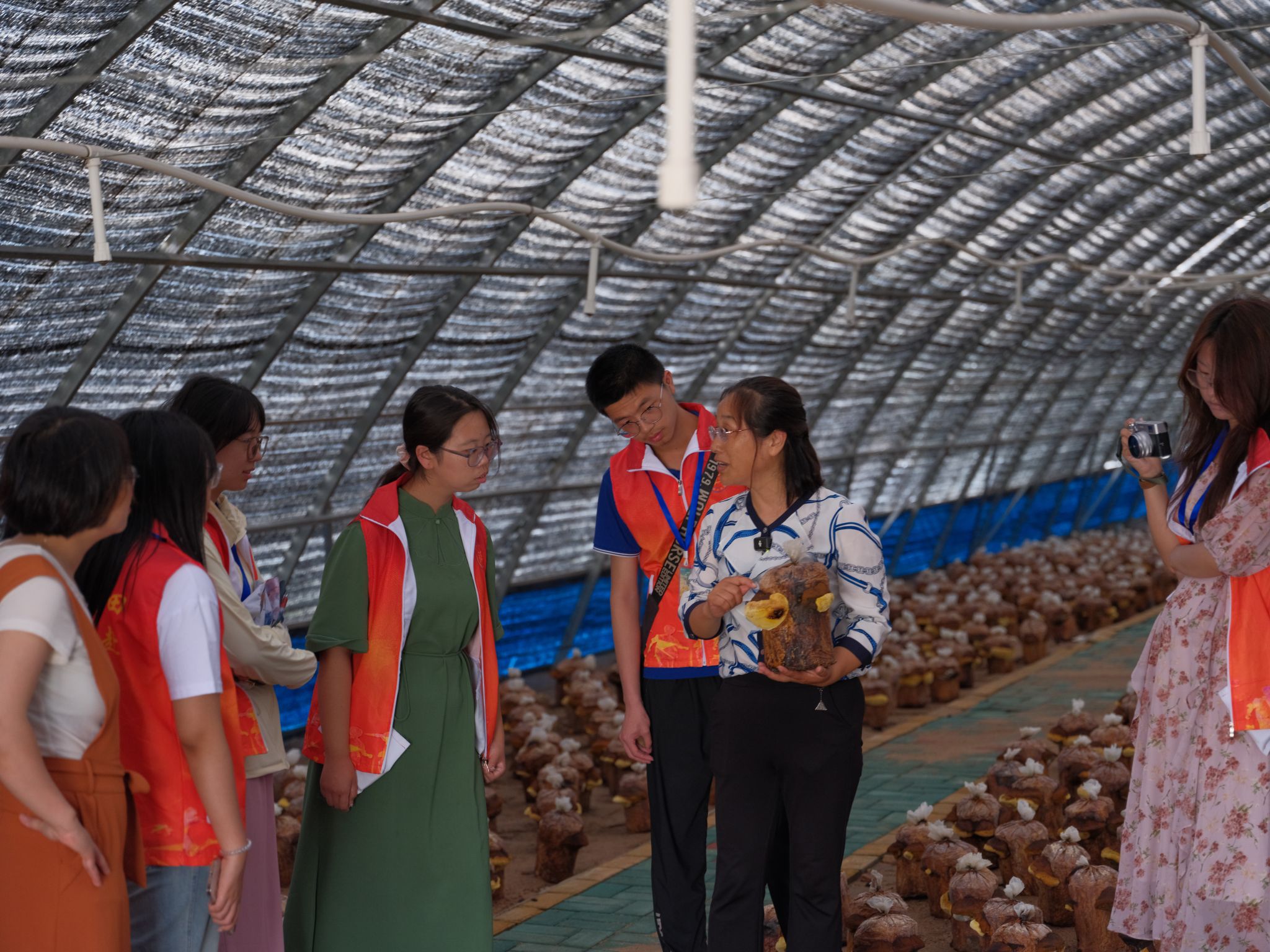 图6:实践团走入八家子镇桑黄生产大棚