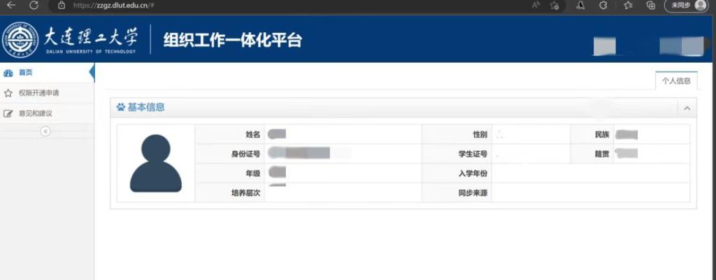 (2)确认首页个人基本身份信息,信息无误后在平台中发起“入党申请人”申请审批;