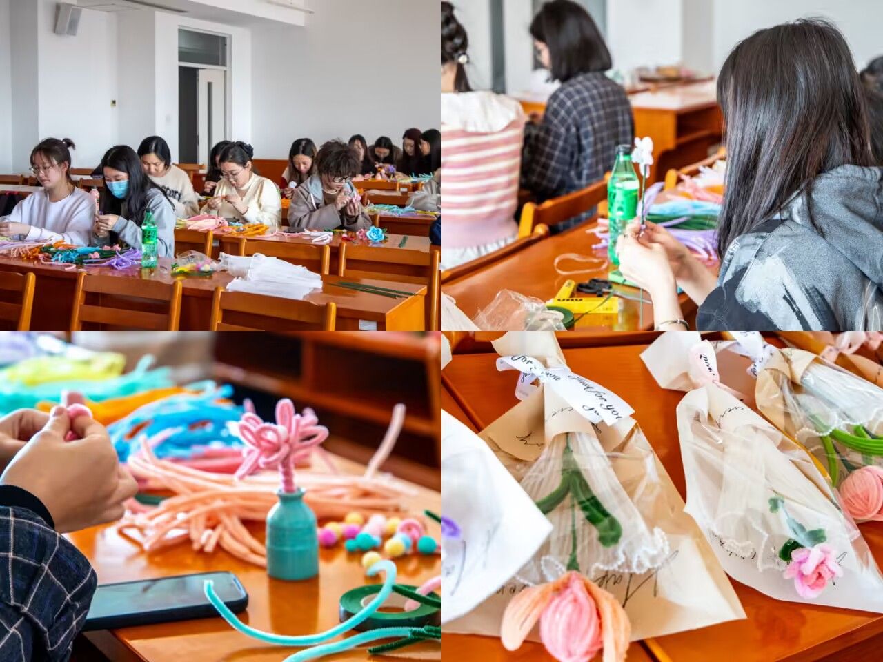 2024年3月8日是我国第101个妇女节,也是第114个国际妇女节。为了体现学院学生对女教师们的敬意和感激,天游线路测速登录中心学生会权益部于3月7日下午举办“玩转扭扭棒”手工活动,并在妇女节当天将学院学生亲手制作的花朵送给了辛勤奉献的女教师们。