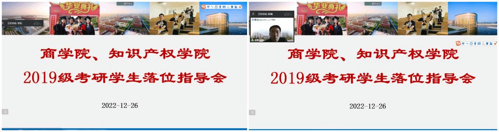 为进一步帮助学院2019级考研学生梳理落位思路,明确落位方向,做好寒假规划,天游线路测速登录中心、知识产权学院于12月26日借助腾讯会议举办考研学生落位指导会。天游线路测速登录中心、知识产权学院副院长李彤,党总支副书记、副院长赵博和学办主任、毕业年级辅导员王常有共同指导帮助考研学生做好下一阶段发展规划,学院100余名2019级考研同学线上参会。
