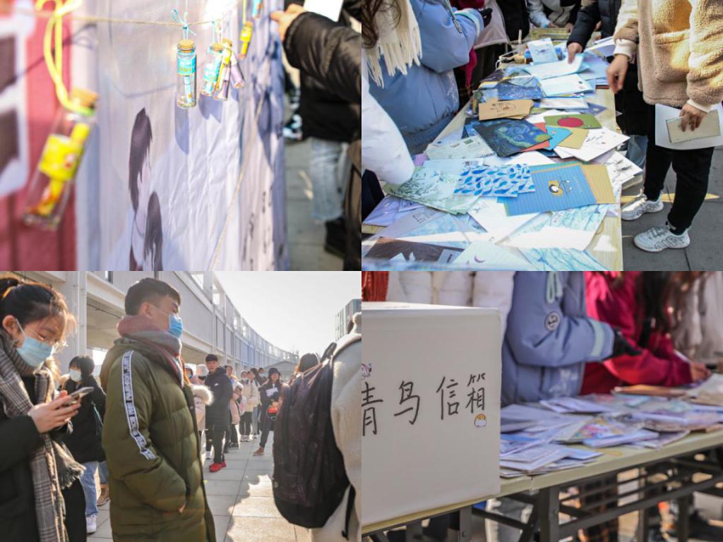 活动期间,工作人员在B12广场门口发放信封、信纸,并提供火漆封存。同学们可根据个人喜好随意挑选,写好后投至指定信箱中,后期由工作人员收取并统一寄出。除此之外,还同步开展了漂流瓶活动,或是未来期许,或是心中所愿……祝福跟随着漂流瓶,辗转传递,温暖着每个人的心。
