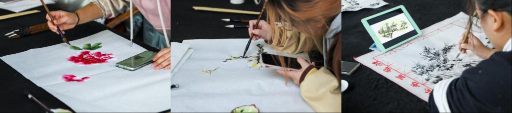 花红柳绿,见国画生姿。现场共创作国画作品三幅。在色彩的流动中,展现国画之澄澈;在黑白的静默中,饱含国画的淡逸劲爽。现场同学欣赏到国画之美,感受到色彩之韵。