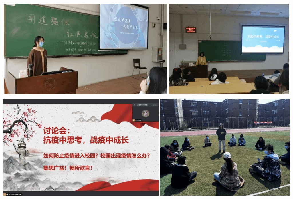 学院所有班级针对“如何防止疫情进校”、“校内出现疫情怎么办”、“封校期间如何规划学习与生活”等问题,集思广益,创新活动载体,在符合疫情防控要求前提下通过线上研讨会、室外座谈会、班级辩论会、抗疫知识竞赛等展开热烈讨论,并积极邀请辅导员、思政班主任参加讨论,累计提出合理化提案22条,为学校和校区统筹疫情防控和事业发展贡献建设性意见。