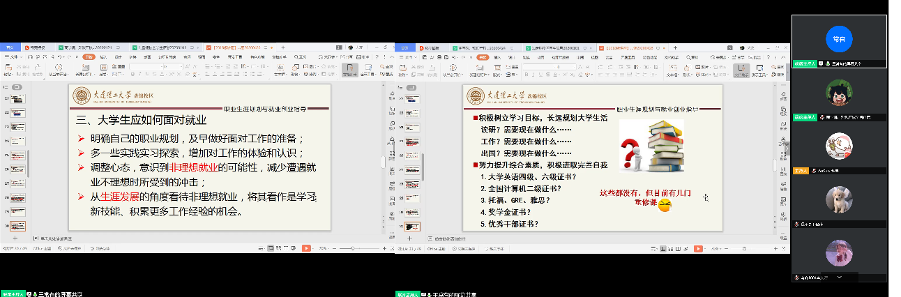 接下来,王常有老师针对当前大学生如何面对就业提出一些建议:明确自己的职业规划,及早做好面对工作的准备;多一些实践实习探索,增加对工作的体验和认识;调整心态,意识到非理想就业的可能性,减少遭遇就业不理想时所受到的冲击;从生涯发展的角度看待非理想就业,将其看作是学习新技能、积累更多工作经验的机会。最后,王常有老师表达了对同学们的期许,希望同学们认识到职业生涯规划的重要性,逐渐探索确立自己的职业发展目标并为之不懈努力。