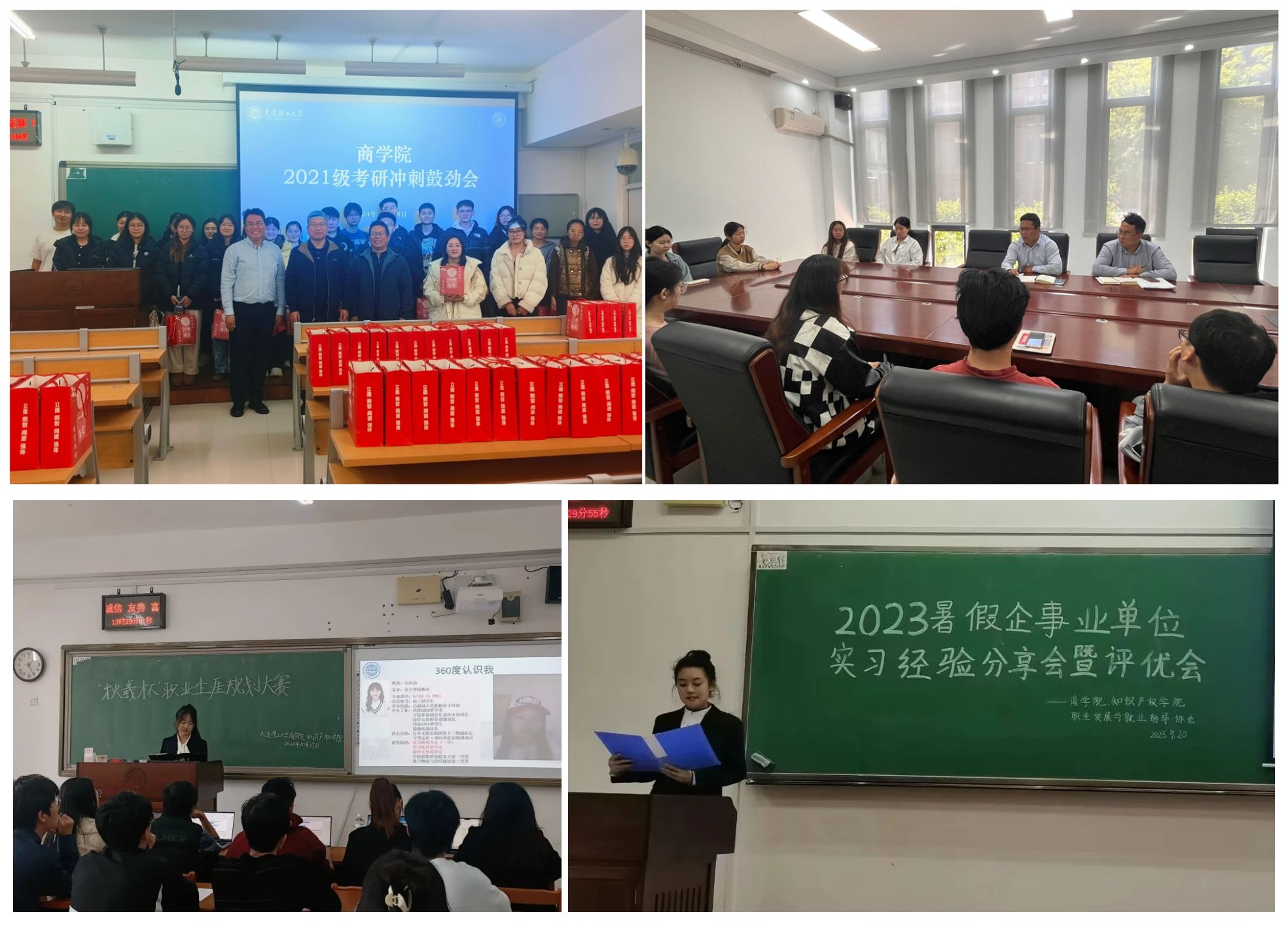 分类指导提升就业工作实效。加强毕业生思想教育引领,举办就业形势分析专题讲座,解读近三年毕业生落位数据,邀请多位优秀校友分享职场经历,帮助毕业生熟悉行业发展前景和职业发展路径。开展全口径就业动员、多轮次就业意向摸底,举办考研报考指导会、初试冲刺鼓劲会、初试后落位指导会、复试经验分享会,召开就业动员大会、就业专题座谈会、“职来职往”招聘会,广泛收集企事业单位招聘信息,“点对点”精准推送就业岗位。举办职业生涯规划大赛、求职简历设计大赛、寒暑假企事业单位实习经验分享会暨评优会,引导学院学生尽早申请各类企事业单位实习,提升自身就业竞争力。