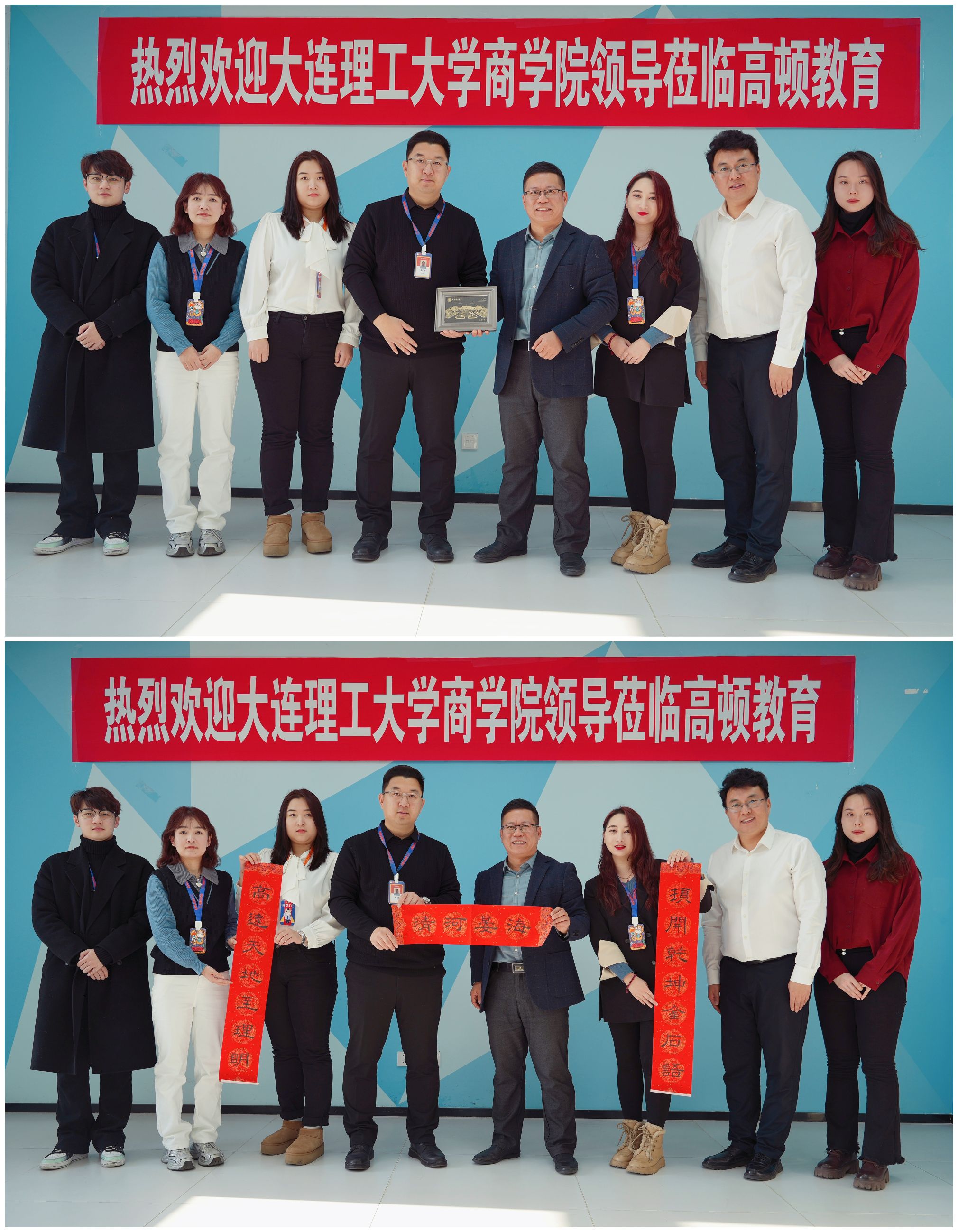 在走访过程中,罗利副书记一行受到高顿教育大连分校市场总监李广强、东北区域财会事业部总监梁燕雯、财经事业部负责人孙立娟等人的热情接待。罗利副书记首先对高顿教育大连分校长期以来对天游线路测速登录中心教育事业的支持表示衷心感谢,并介绍了学院基本信息和学生培养情况,表达了进一步深化校企合作的愿景和期待。李广强、梁燕雯两位总监介绍了公司的发展历程、企业文化、主营业务和招聘需求。最后,罗利副书记代表学院向高顿教育大连分校赠送了特色礼物和学院学生亲手书写、饱含美好祝愿的春联。