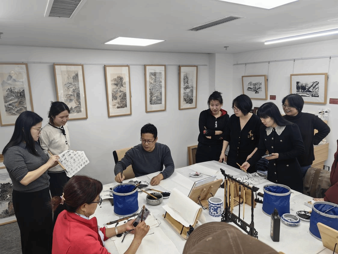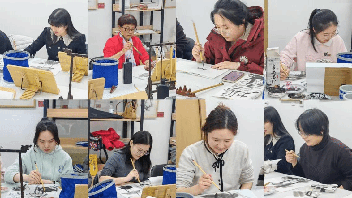 活动伊始,女教工们自由体验绘画、感受绘画魅力。随后,罗利为大家讲解了水墨画的基本知识和技巧,并现场示范临摹。在罗利的指导下,女教工们纷纷提笔挥毫,尽情发挥创意,体验水墨丹青的乐趣。