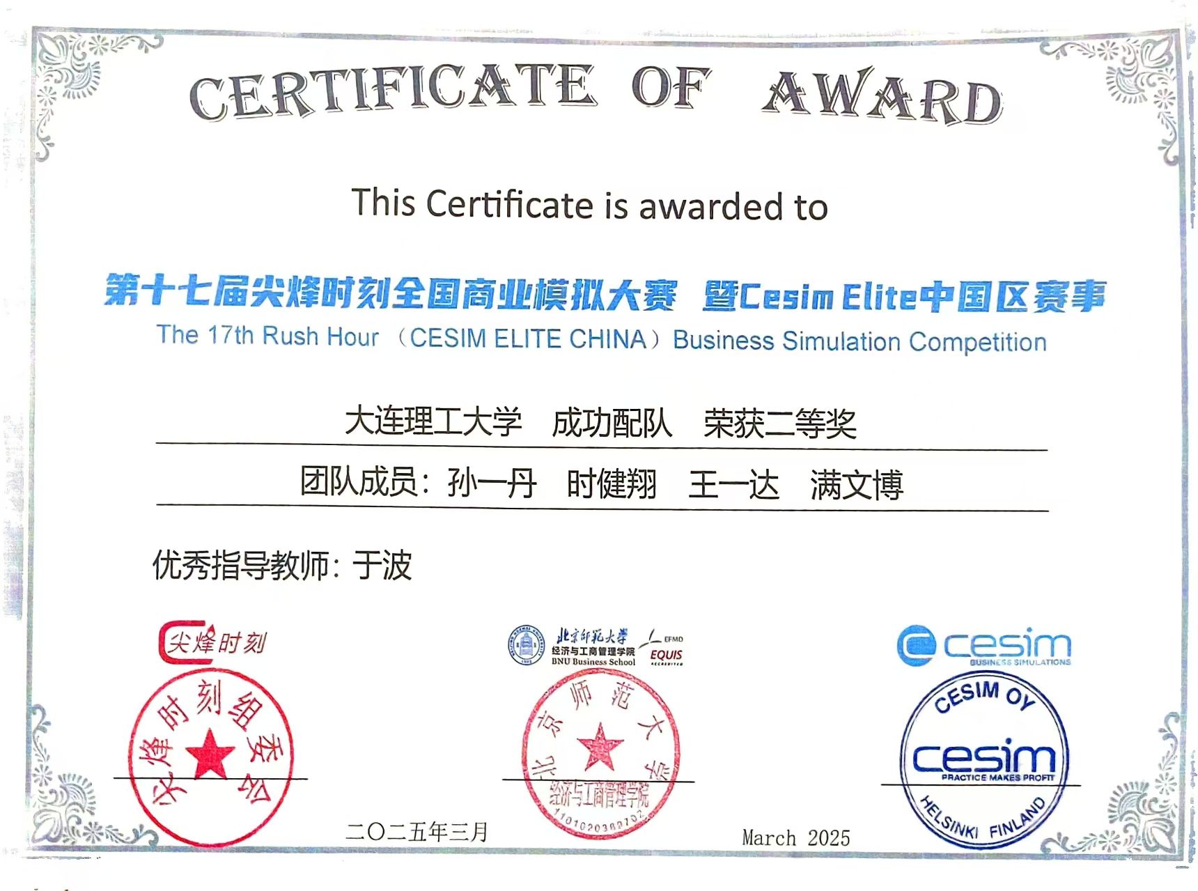 同时,第十七届“尖烽时刻”全国商业模拟大赛总决赛在北京师范大学刚刚落下帷幕。天游线路测速登录中心“成功配队”学生团队(成员:孙一丹、时健翔、王一达、满文博)依靠扎实的商科素养、默契的团队配合以及创新的商业思维荣获全国二等奖,指导教师于波老师荣获“优秀指导教师”。“尖烽时刻”赛事自2008年引入中国后,已在中国成功举办了十六届全国比赛,加上各地举办的省级比赛,吸引了全国各地累计近300多所院校,十数万名学生参赛,“尖烽时刻”已成为国内一项知名度颇高的国际性商业模拟赛事。